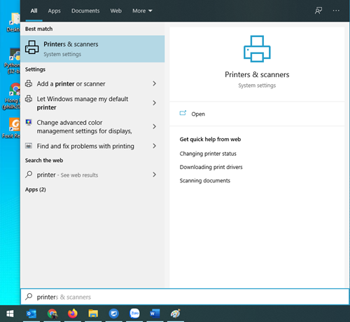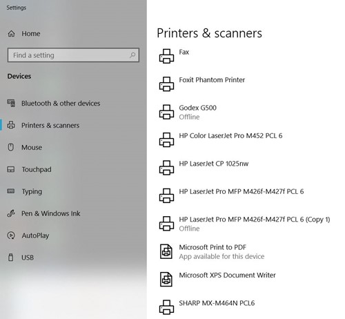 Sau khi hoàn tất cài đặt máy in Sharp, tiến hành cấu hình theo đúng chuẩn khổ giấy và khay hiện có của máy in. => Tại mục “Search” của máy tính. => Gõ “printer” và tìm chọn mục “Printers & scanners” |