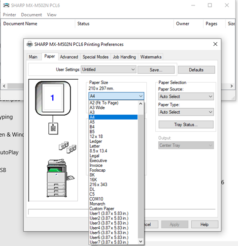 Sau khi bảng Printing Preferences xuất hiện, chuyển sang tab “Paper” và chọn định dạng “A4” trong ô “Paper Size” Hoàn tất chọn “Apply” để kết thúc. |